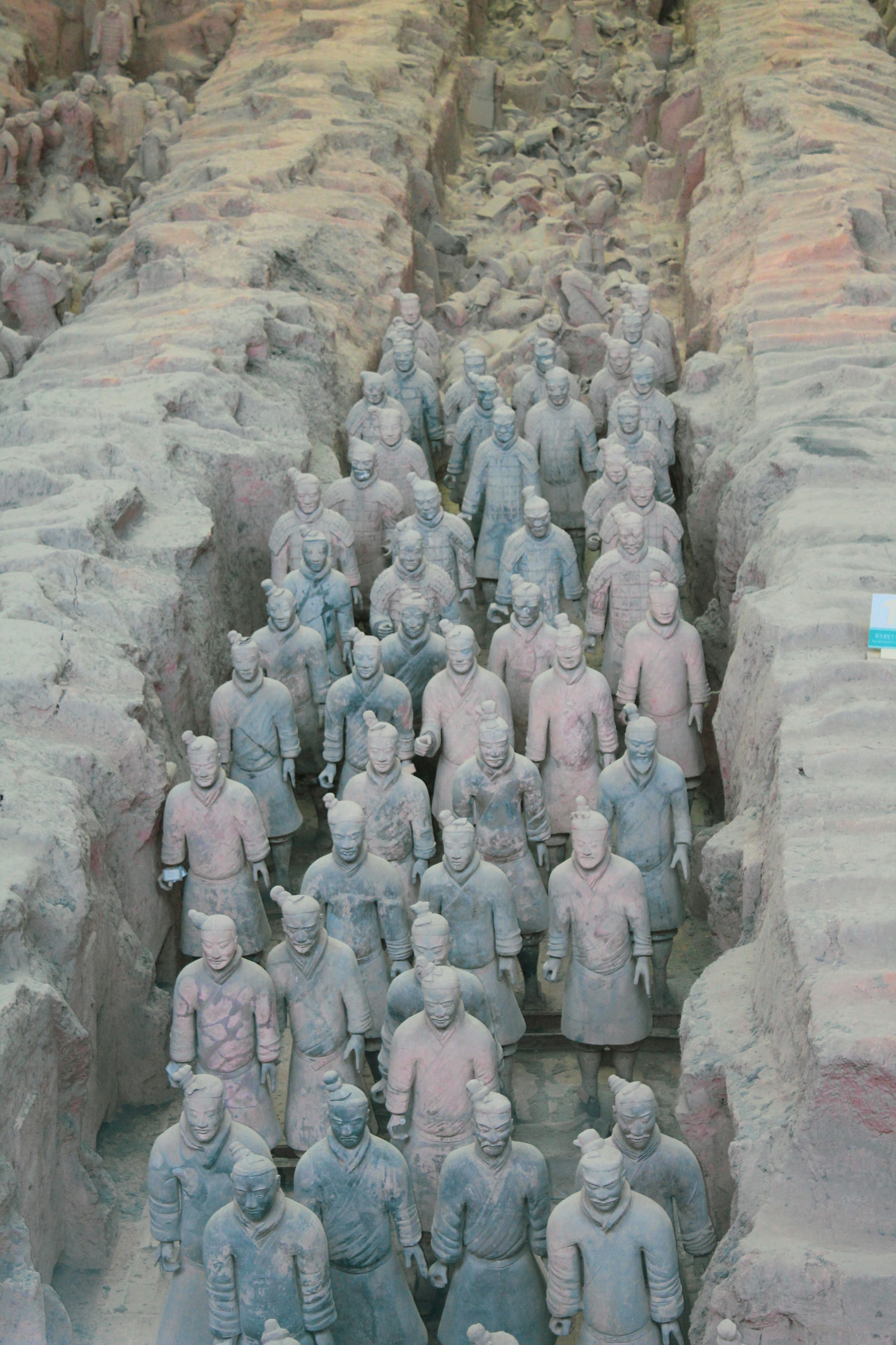 世界第八大奇蹟兵馬俑博物館, 由1號/ 2號/ 3號坑組成, 部份俑坑在項羽入關時被毀埋沒, 尚存陶俑人物馬匹姿態各異, 表情栩栩如生, 還有10多萬件各式各樣兵器及2件雕刻精緻的銅馬車.