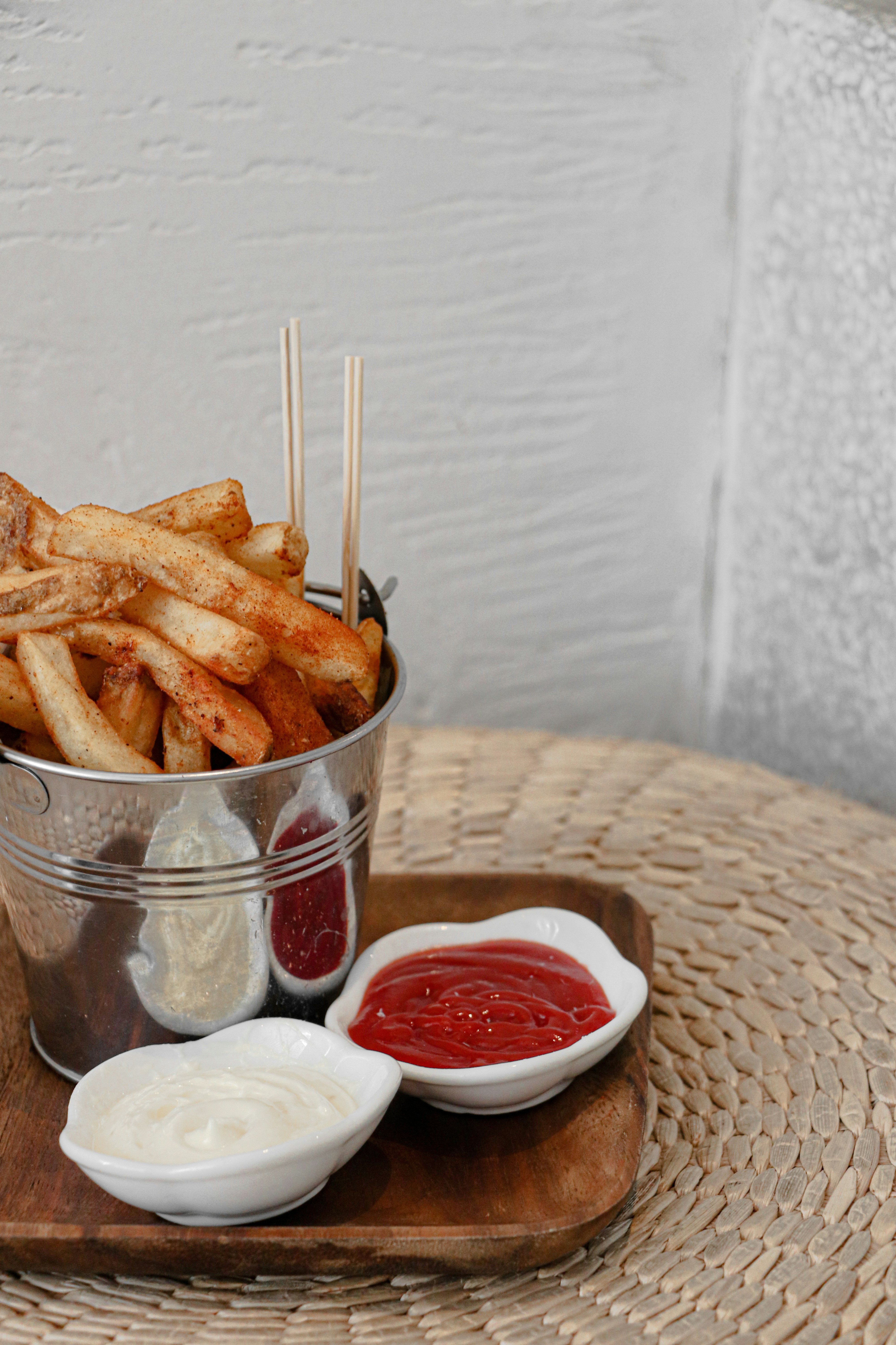 熱油鍋放入薯條,炸至顏色稍微變深